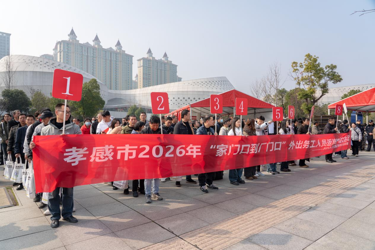上午10:00,孝感市2026年“家门口到厂门口”外出务工人员返岗护航专车准时发车。300余名孝感籍外出务工人员搭乘“点对点、一站式”定制返岗大巴,分赴武汉、郑州、广州三地返岗复工,全程享受免费交通、随行保障、物资供给等暖心服务,真正实现出家门、上车门、进厂门的无缝衔接。