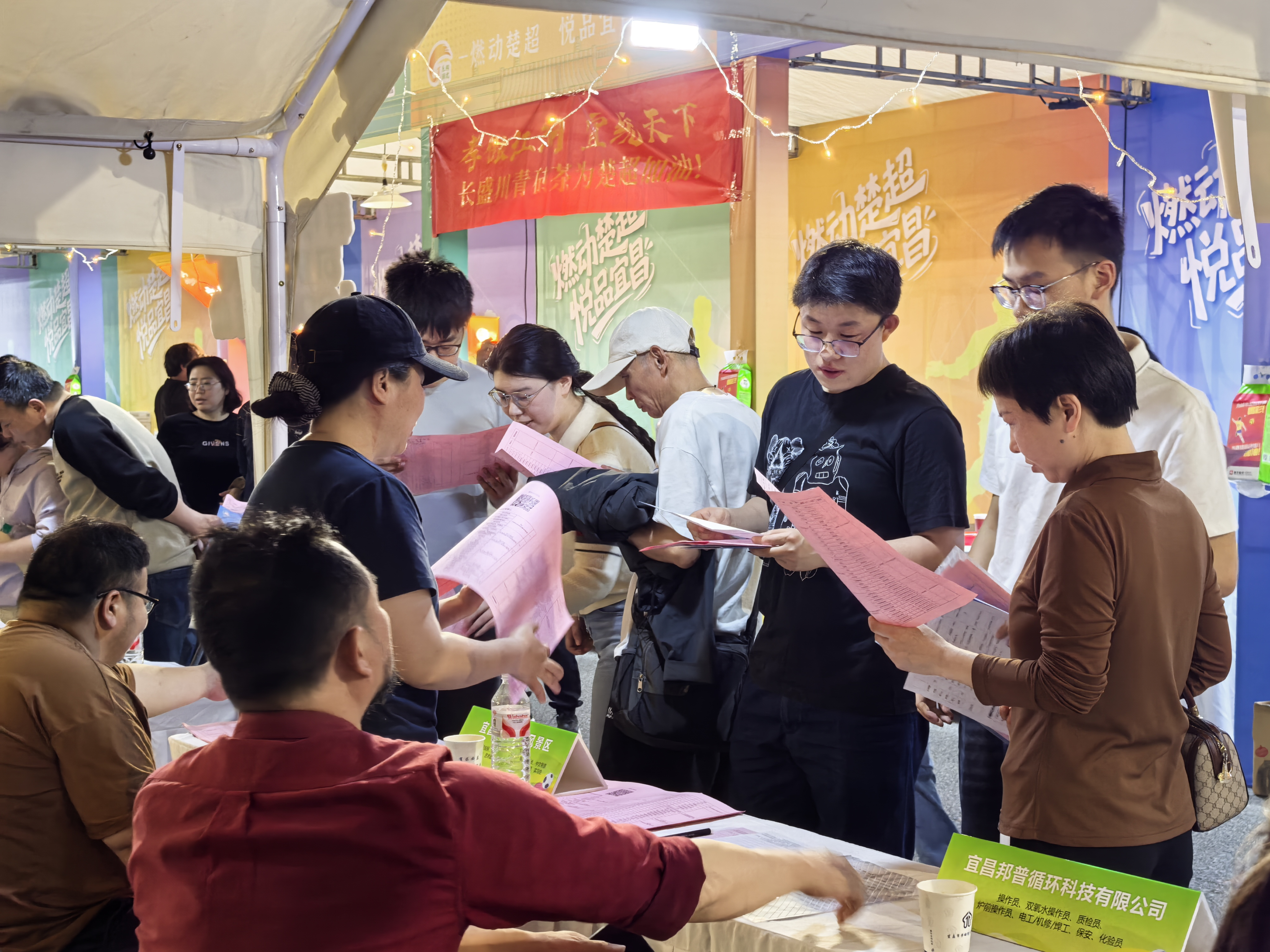 除政策宣传外,现场还携多家本地知名企业进场揽才,涵盖新能源新材料、装备制造、文化旅游和现代服务等领域。企业人事专员化身“摊主”,热情介绍企业前景、岗位需求和薪资待遇,求职者穿梭其间,驻足细看或深入洽谈,享受休闲与求职相结合的便捷体验。