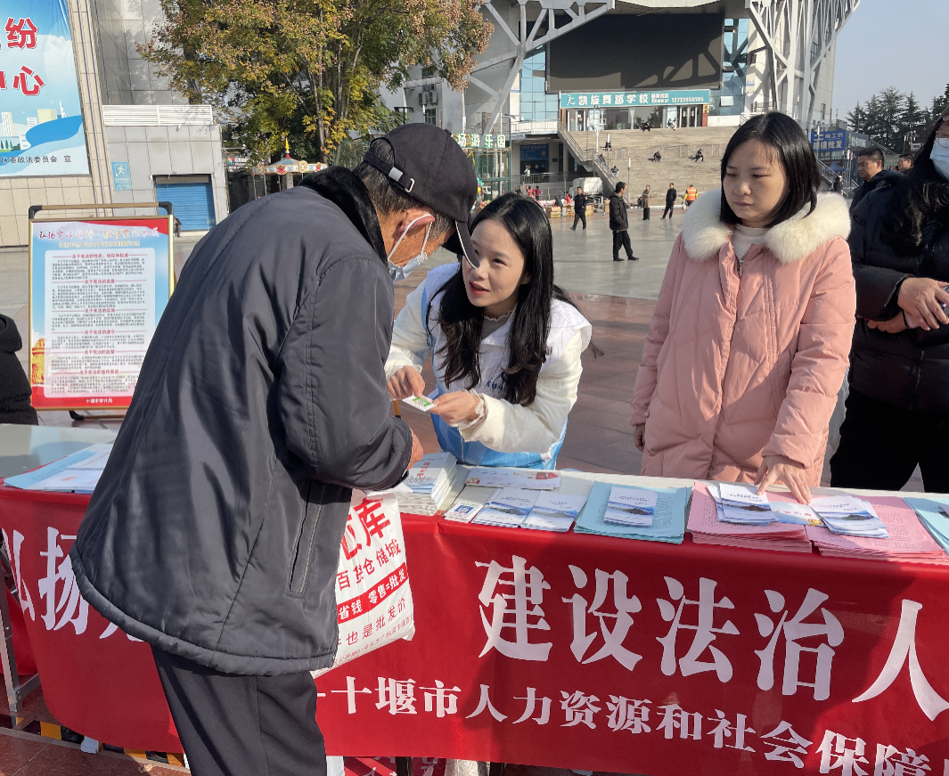 一、广场普法“零距离” 政策宣讲入民心。12月1日,十堰市人社局在市人民广场开展“宪法宣传周”暨人社政策集中宣传活动。通过设立政策法规咨询台、悬挂宣传横幅、发放政策手册、现场答疑解惑等形式,聚焦宪法、保障农民工工资支付条例、社会保险法等民生领域的核心法律法规,现场工作人员将政策条文转化为“大白话”,把生硬法条变成“民生服务指南”,为群众提供精准化人社政策服务。此次活动累计发放宣传资料2000余份,接待群众咨询500余人次,获得群众广泛好评。