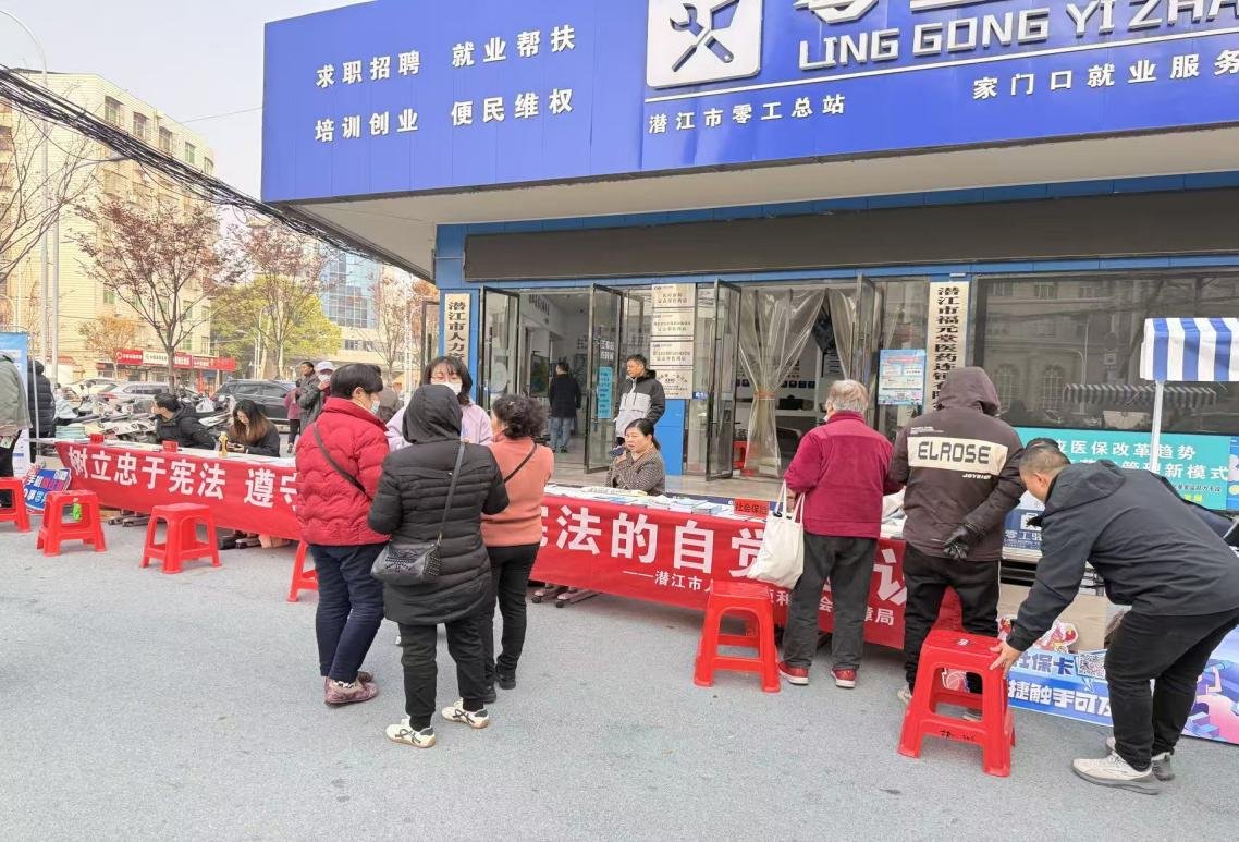 活动期间,荆州市各级人社部门立足部门职能,聚焦人社领域政策落地与法治建设融合,创新载体、精准发力,积极开展“宪法宣传周”系列活动……监利市人社局安排业务骨干对群众关心的养老保险参保缴费、养老金领取、就业补贴申领等专业问题进行集中解答。沙市区人社局联合朝阳街道、区司法局、区民政局、区医保局开展“宪法·‘稳’民生”普法活动。活动现场,人社、民政、医保等部门开设政策咨询专区,围绕社保政策、社会救助、医疗保险等群众最关切的事项提供专业解答。洪湖市人社局积极参与市守法普法协调小组组织的“12·4”国家宪法日集中宣传活动,组织业务骨干在洪湖雅斯广场开展线下宣传,发放宪法宣传手册、人社政策宣传单等资料共计800余份,接待群众咨询320余次。