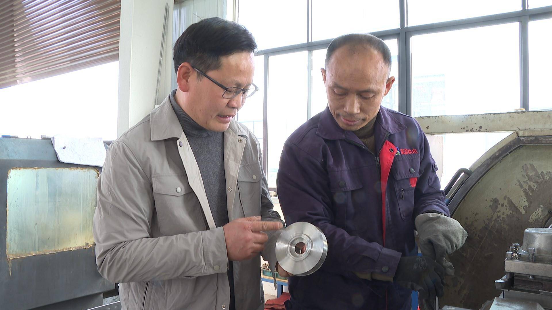 阮青华指导工人打磨配件。