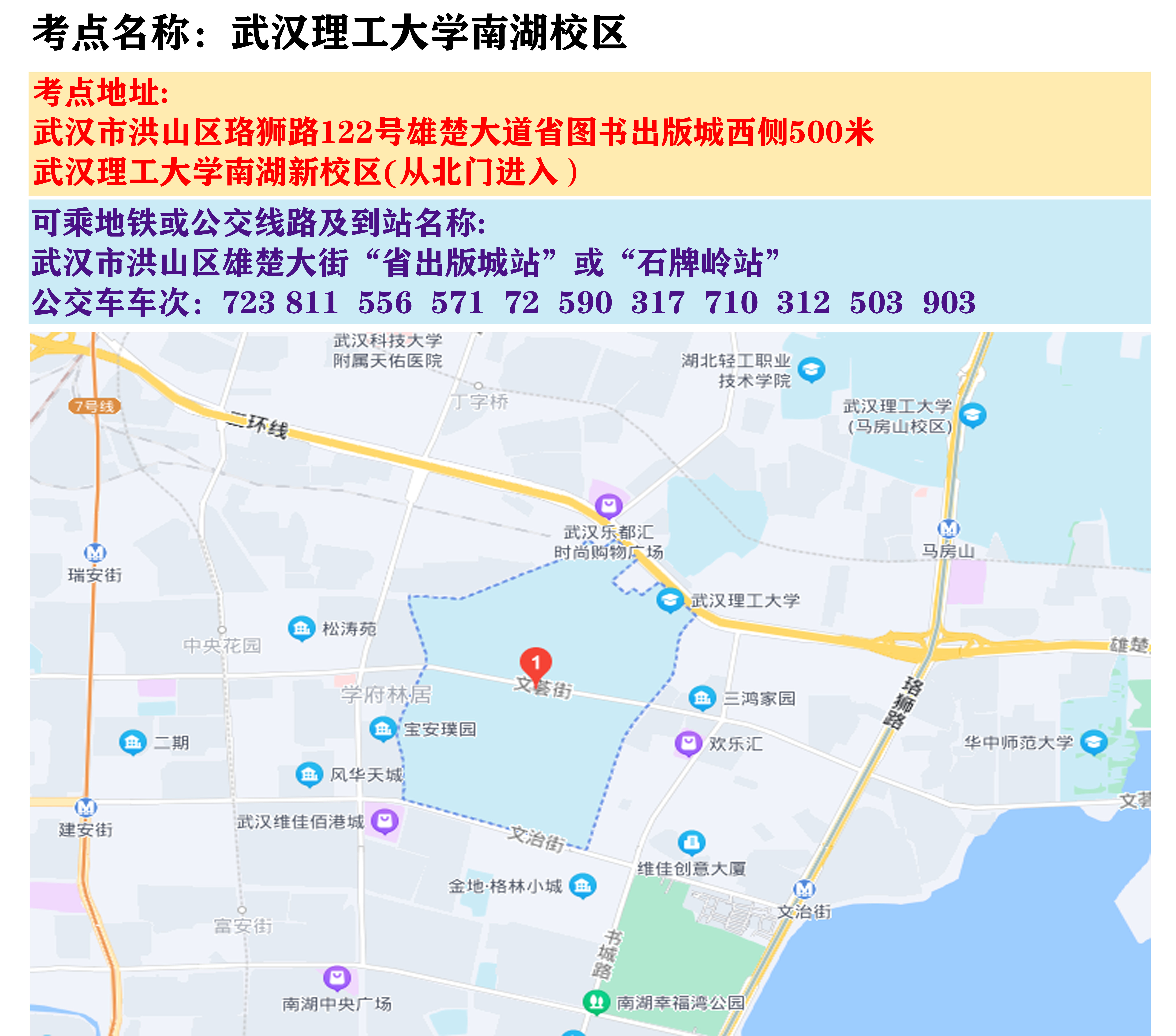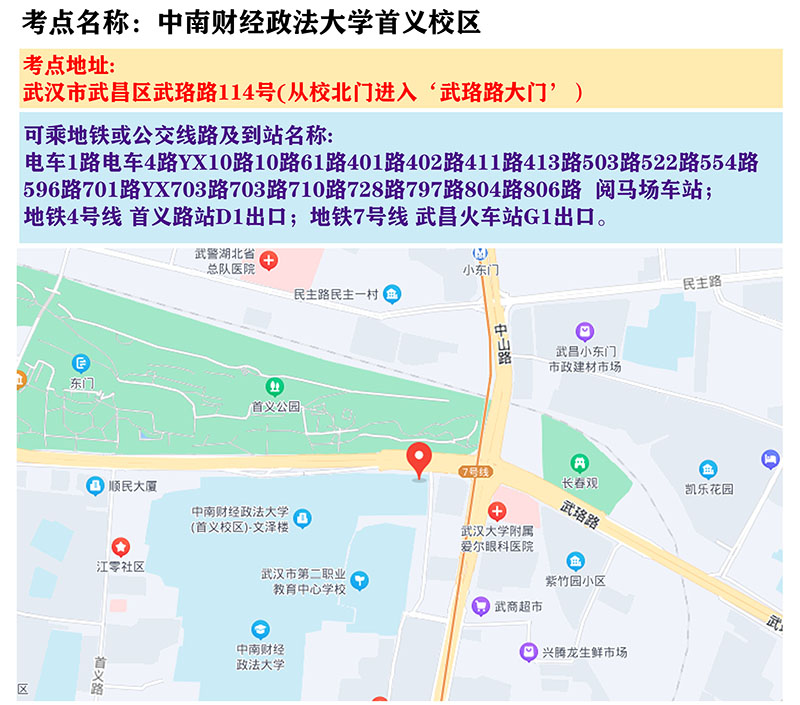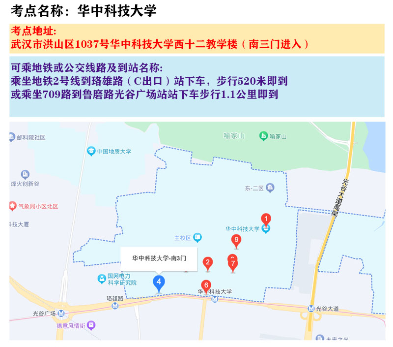 2024年湖北省选调生招录考试笔试考点地图
