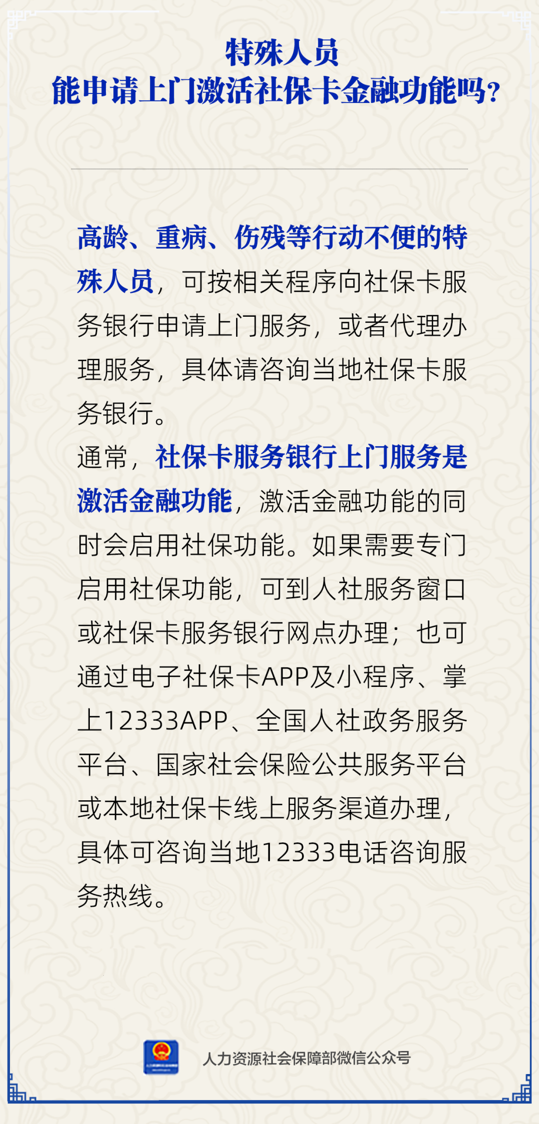 特殊人员能申请上门激活社保卡金融功能吗?