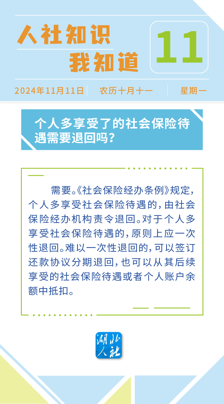 【人社知识我知道】丨个人多享受了的社会保险待遇需要退回吗?